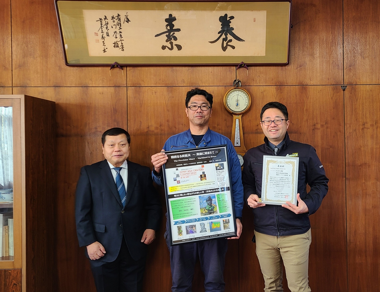 メカニクスコース卒業生の植嶋晴奏さん(2024年卒業)が在学中に作成したデータを基に,本校教職員が真鍮に1インチ(=25.4 mm)の大きさで微細加工した作品が,微細加工工業会主催の「Expert Bisai Creators Contest 2025」学生部門で優勝しました.