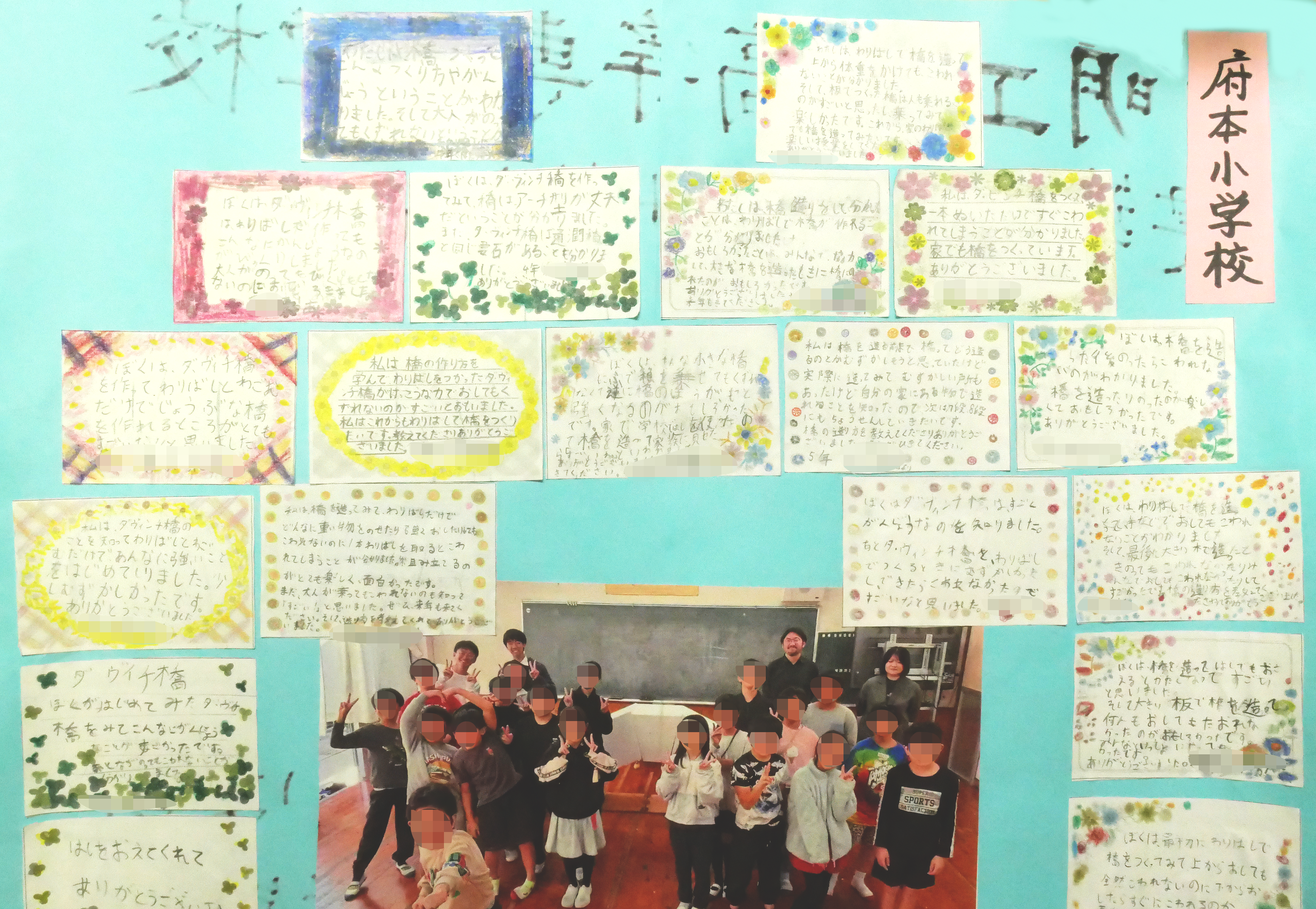 - 府本小学校の皆さんからのお手紙(写真は当日の様子)