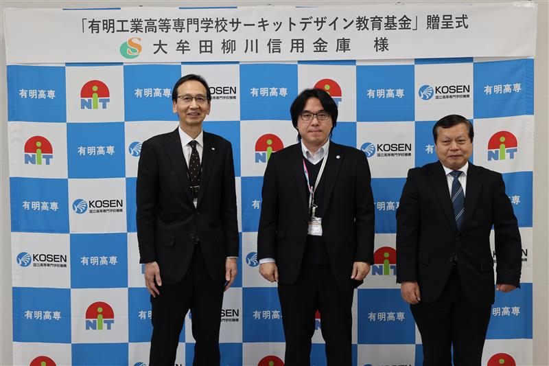 大牟田柳川信用金庫は、地域金融機関として地域の社会貢献活動に積極的に取り組まれており、その一環として教育・人材育成への支援を行われています。今回ご寄附いただいた「サーキットデザイン教育基金」は、有明高専における半導体・回路設計(サーキットデザイン)教育の充実、ならびに地域産業を担う次世代の技術者育成に活用する予定です。